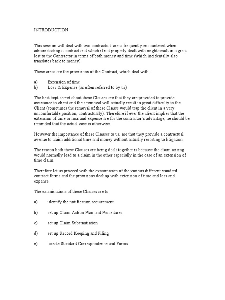 Extension Of Time In Construction Contracts