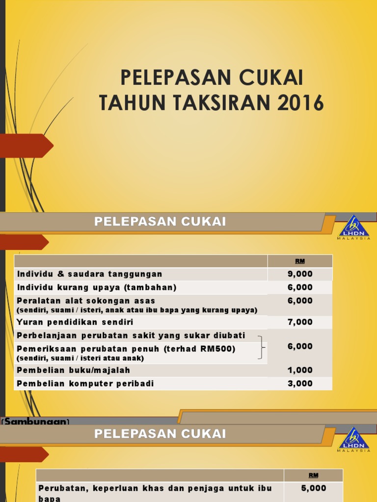 Pelepasan Cukai Tahun Taksiran 2016