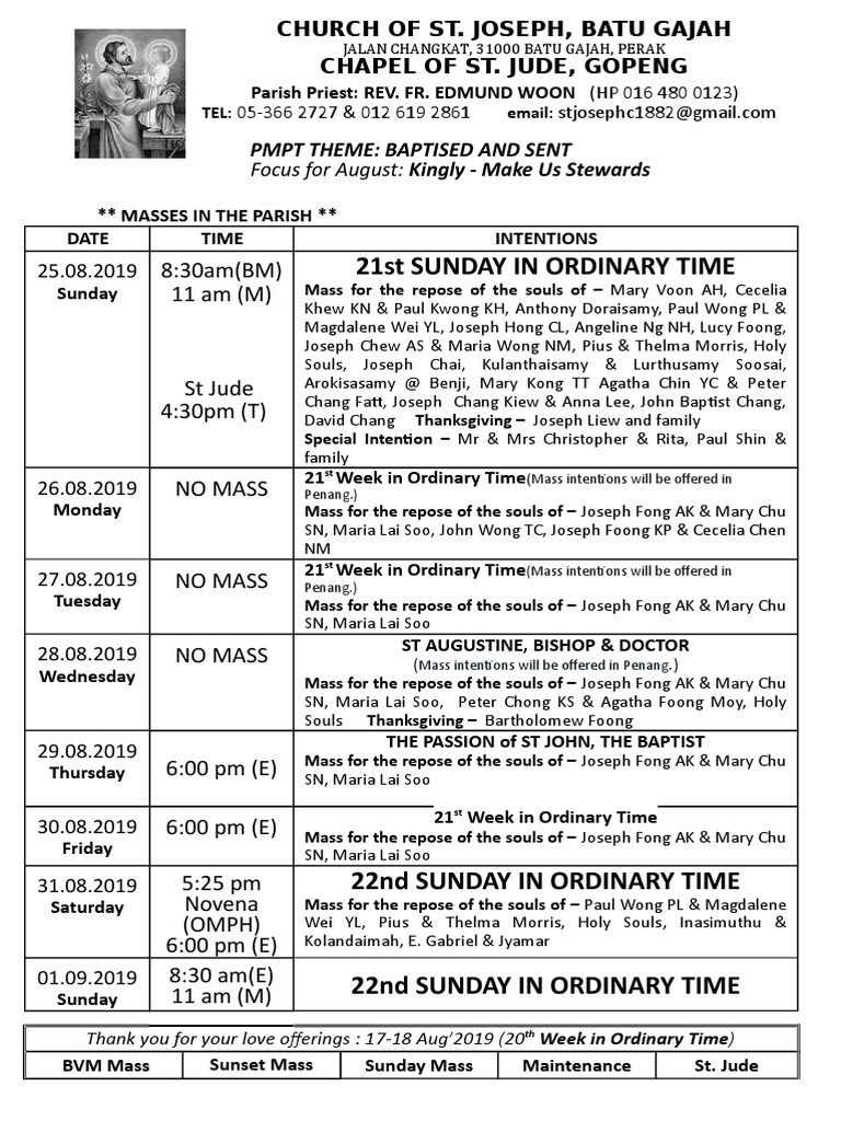 Bulletin For 10 2 2019 17 2 2019 堂讯 Catholic Church Of St Michael Ipoh 怡保圣米高 天主教堂 Facebook
